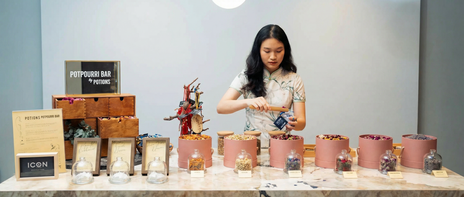 At Potions, we design immersive scent experiences for corporate events, weddings, and private celebrations. From bespoke perfume bars and potpourri stations to custom-developed scents and branded gifting, every experience is thoughtfully curated to engage, delight, and leave a lasting impression.